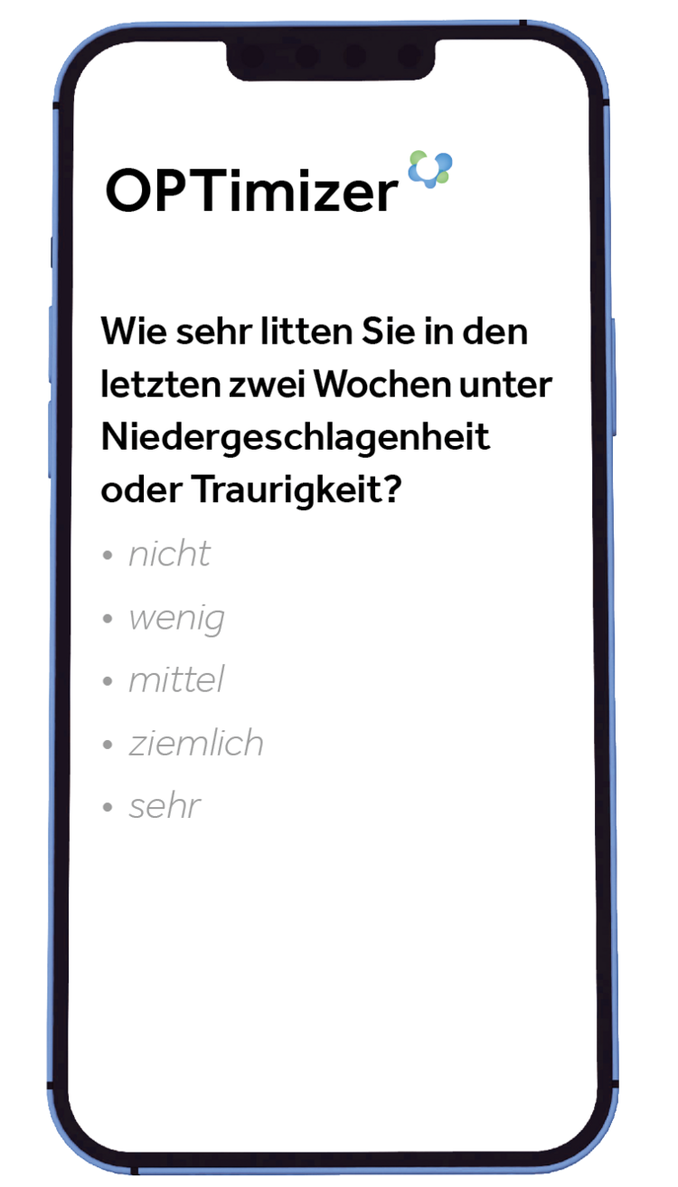 Mit dem OPTimizer setzen unsere Oberberg Kliniken neue Maßstäbe in der individualisierten, evidenzbasierten PatientInnenversorgung. Der OPTimizer ermöglicht eine kontinuierliche Erfassung zentraler Parameter (z. B. Depressivität, Angstsymptomatik) über validierte Fragebögen wie den PHQ-9. Diese Daten fließen in Echtzeit in unseren therapeutischen Prozess ein und erlauben eine präzise Anpassung der Behandlungsstrategie – insbesondere bei komplexen Behandlungsverläufen. Das therapeutische Team profitiert dabei von einer fundierten, datengestützten Entscheidungsgrundlage im Behandlungsverlauf.